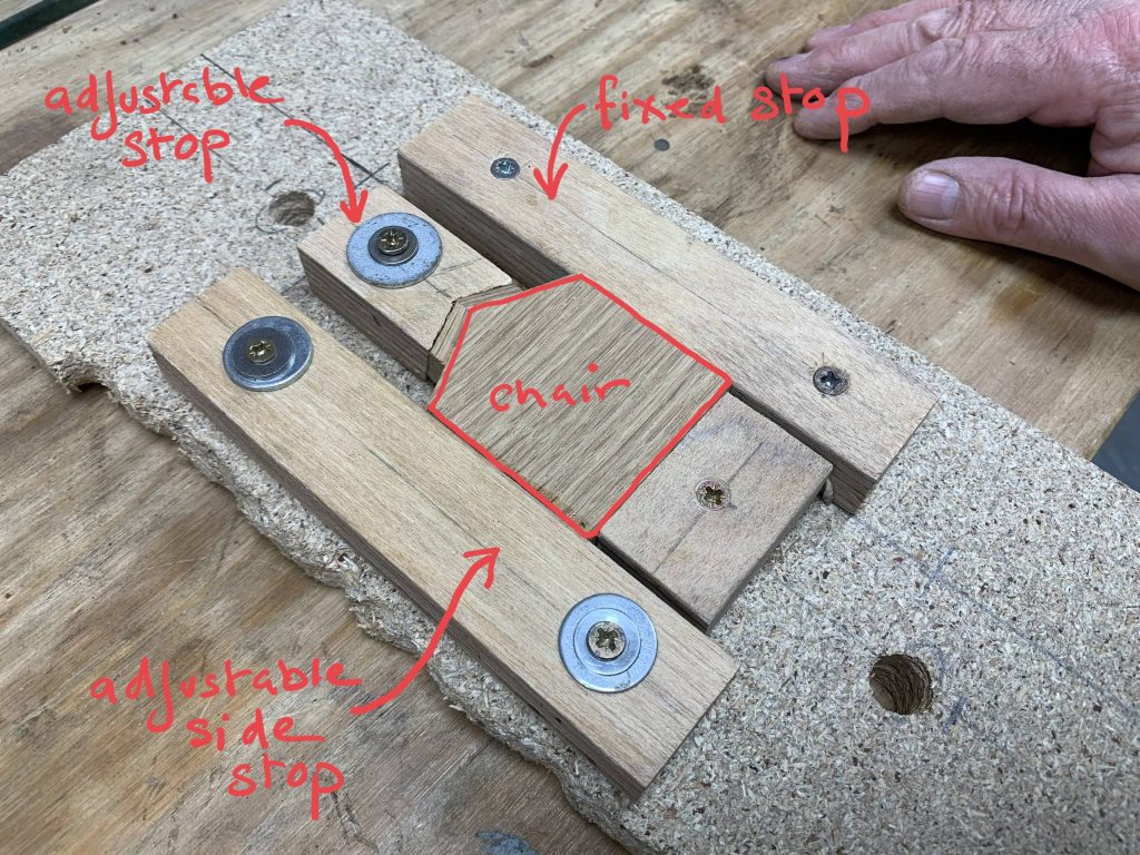 Once we worked out our angles we needed to have a drilling method that would allow us to cut consistent pocket angles in each and every chair.