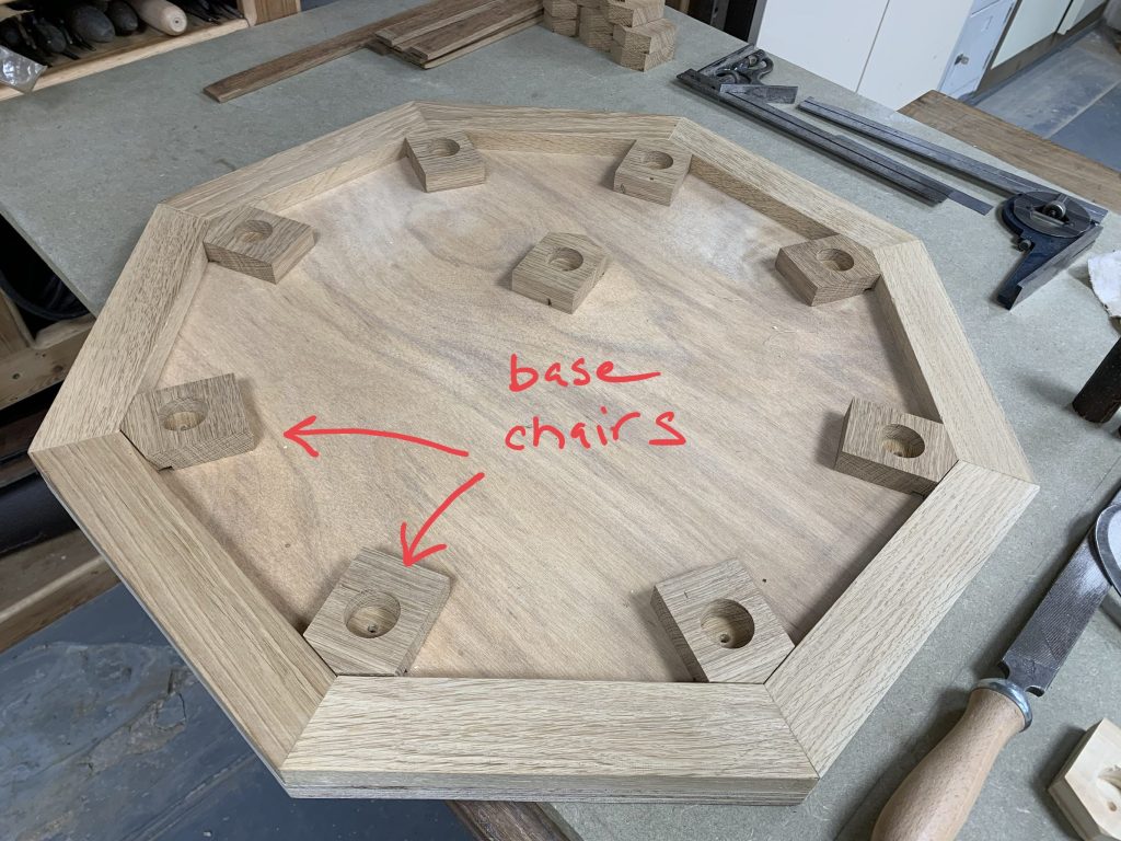 And here we have the chairs temporarily in place. When we’ve completed the corresponding chairs for the top plate we’ll do a dry fix to ensure everything fits.