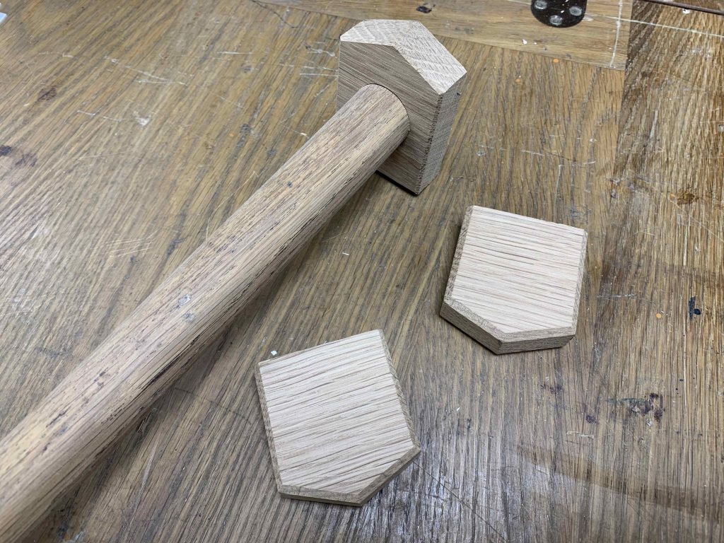 Much of the timber used comes from timber thrown out during a local church’s refurbishment. It seems quite fitting that this salvaged timber is being used for the processional cross stand.