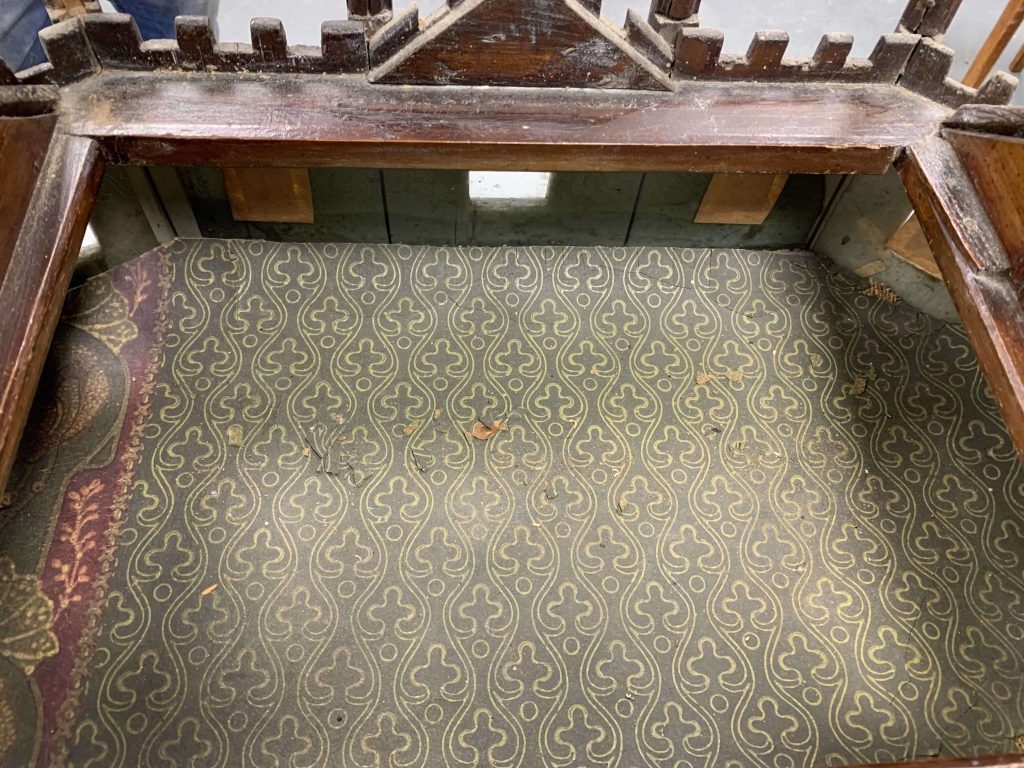 The floor is covered with a piece of lino and it would be nice if we could assume that this is a spare piece left over from a flooring job in the church. Rolling back the lino reveals details of when it was made and by whom.