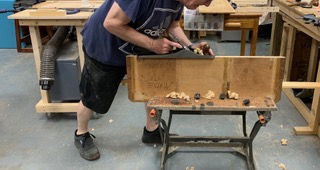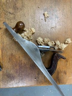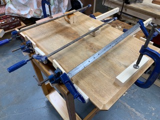 The plan is to get both edges as straight and flat as possible. Then we only work on one board and fit that to the other. It becomes a process of cut, test fit, analyse and adjust as necessary. Once we’re happy with the fit we do a trial clamp up ready for gluing which will really show us if the joint is tight. This is how it started.