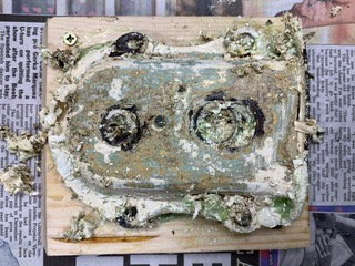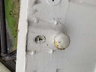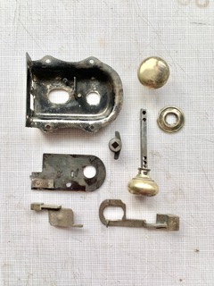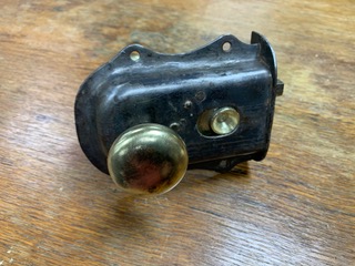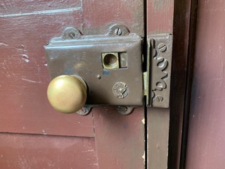 This piece of ironmongery had no identifying marks on it so precise dating is a challenge. We described this as an elderly rim latch but how old might this actually be? The street in which this latch and door was found has late Victorian terrace houses in it. One imagines that the person(s) dumping this door would not have carried it too far. So perhaps this is Victorian? The door from which it was removed was of a distinctly Victorian pattern.