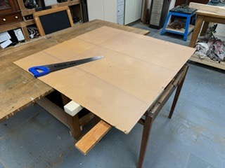 Today we had several jobs in the workshop. A chest of drawers was missing its backboard and needed a new one, a bookcase had lost its stability which needed sorting and a delightful dolls house had it carrying handle broken which had to be re glued. As we worked away we were contemplating that, in essence, we were using ‘heritage skills’. You might reasonably ask how can contemporary items require heritage skills? The word heritage simply means that which we have inherited, therefore the skills we used to sort these problems are ones we’ve inherited. Thus today’s work has involved measuring, cutting with hand tools, and an understanding of the characteristics of wood. These are all skills that have been with us for many, many generations.So returning to the chest of drawers after careful measuring and marking out we start by cutting the back board. Cutting thin boards presents certain challenges, one being the fact that as a cut progresses the board looses rigidity and starts to collapse pinching the saw. So the whole board needs supporting, this we do by resting the board on two tables with the cut line falling in the middle.