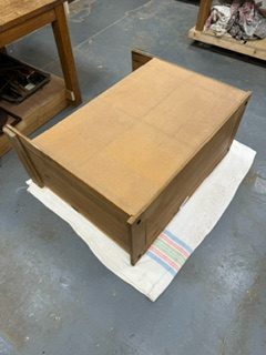You’ll note that the chest of drawers is lying on a blanket which protects the finish from scuff damage.
