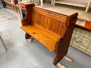 We have some redundant pews from a local church dating from 1818. Being about 20’ in length these pieces of ecclesiastical furniture are too long for domestic use. To give them a new life we’ve been cutting them to shorter lengths to make 2 seater benches. They will be for sale in our shop. They are made from pitch pine which grows in North America. As we work on them we can see that they had a considerable amount of hand work on them whilst being constructed.