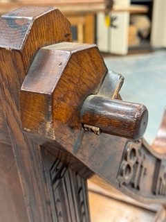 In the workshop today we have a customer’s Glastonbury chair for repair. This chair is almost certainly from the late 1800’s tho’ named after The Tudor period’s Bishop of Glastonbury.