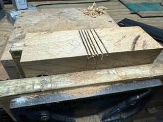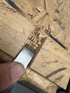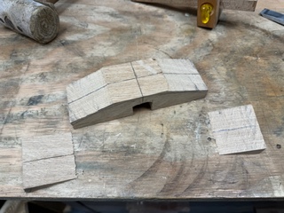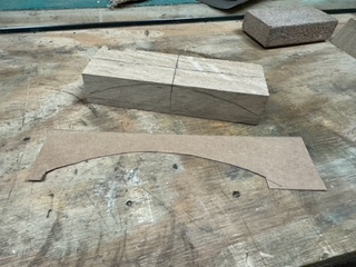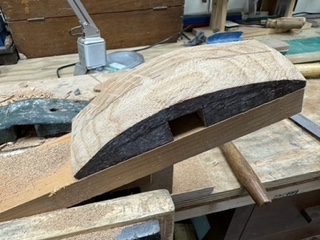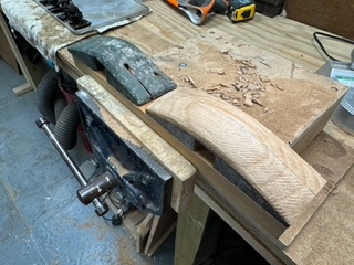 The curves will be done with a rasp by hand. Well seasoned oak is quite hard so the shape is roughed out by cutting excess material off with a saw.