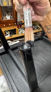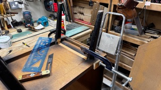 A pair of the cabinet’s legs were too short which we fixed by gluing wooden pads to them which were eventually painted over to match.