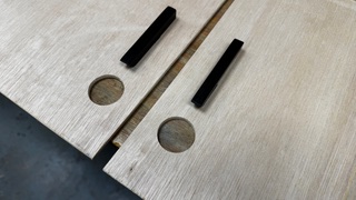 We came up with what we would hope to be a visually striking design. We had a thumb hole above which there was a handle. The handles were made from the black keys off a piano.