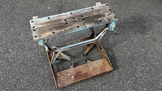 We found this Workmate dumped in the street. Thank you to whoever left it out there. For a workshop this is a gift. Whilst it looks a little rough all the parts are there, it folds and the jaws work. A few of the pressed steel frame members are bent but we should be able to straighten them. A little bit of work and this will become a usable Workmate. So watch this space.